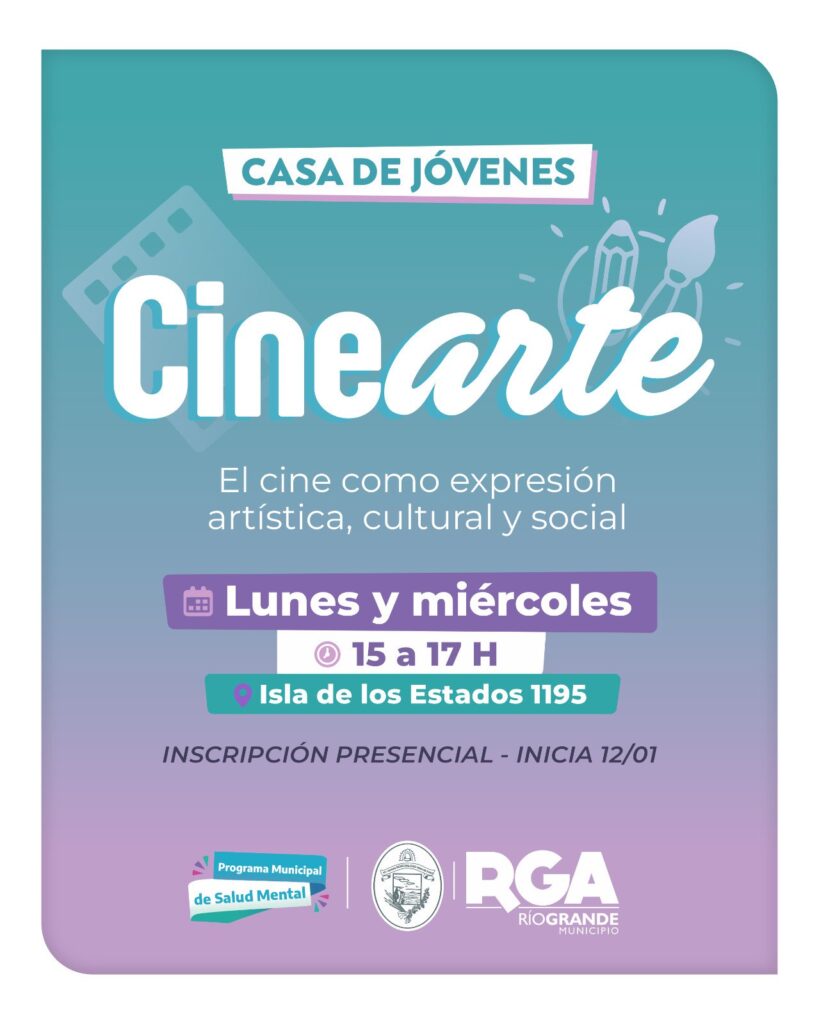 El Municipio de Río Grande invita a las juventudes de la ciudad a participar de “CineArte”, una propuesta que se lleva adelante los lunes y miércoles de 15 a 17 horas, en Casa de Jóvenes, situada en Islas de los Estados 1195. “CineArte” es un espacio de encuentro y reflexión que propone abordar el cine como arte y medio de expresión, promoviendo el pensamiento crítico como la creatividad audiovisual.