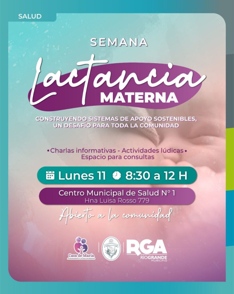 Desde el Municipio de Río Grande se llevarán adelante diferentes acciones en el marco de la Semana Mundial de la Lactancia Materna, bajo el lema: “Prioricemos la lactancia materna: construyendo sistemas de apoyo sostenibles”.