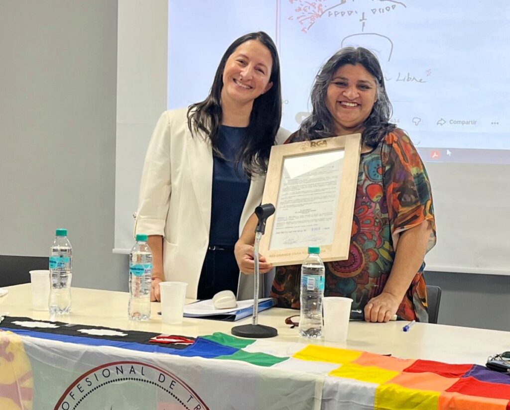 En el contexto de la celebración de sus 3 décadas de trayectoria institucional, la secretaria Ivana Ybars otorgó el decreto que declara de Interés Municipal este evento tan importante, reconociendo las jornadas como al Colegio Profesional por su compromiso con el resguardo y la defensa de los derechos de sus matriculados y matriculadas, en cumplimiento de la Ley Provincial N° 1165 y la Ley Federal de Trabajo Social N° 27.072.